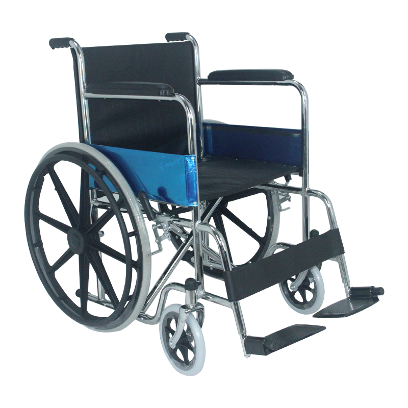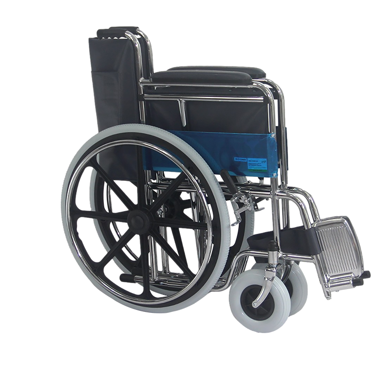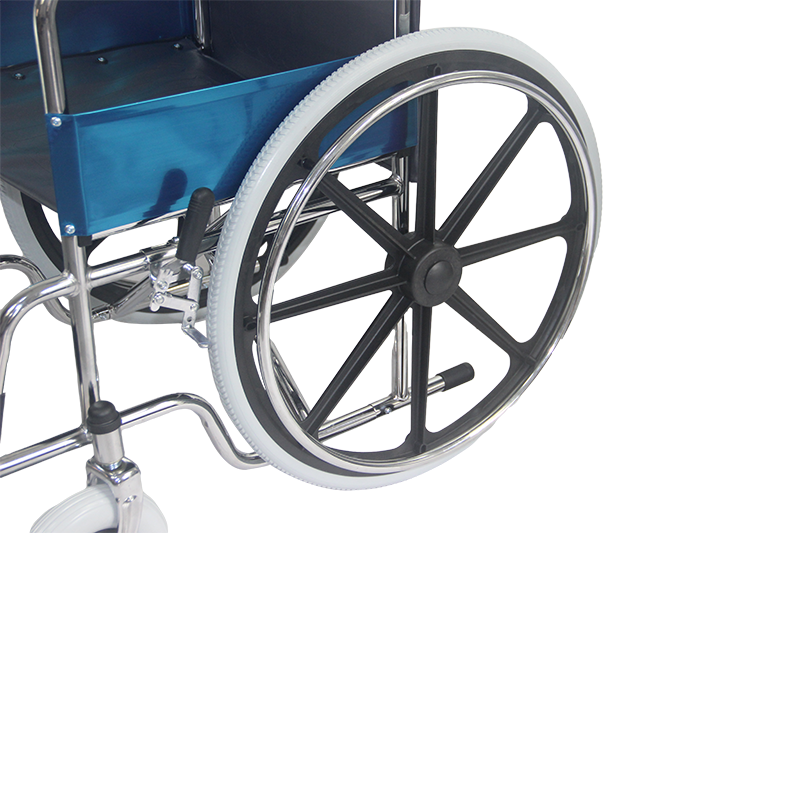 This economic steel manual wheelchair is designed with low maintenance in mind, saving users time and effort. The solid front and rear tires eliminate the need for inflation, avoiding the hassle of checking tire pressure or repairing punctures. The chrome-plated steel frame and stainless steel side panels are easy to clean—simply wipe with a damp cloth to remove dirt and stains. These features make the wheelchair a practical choice for users or caregivers who prefer hassle-free upkeep.